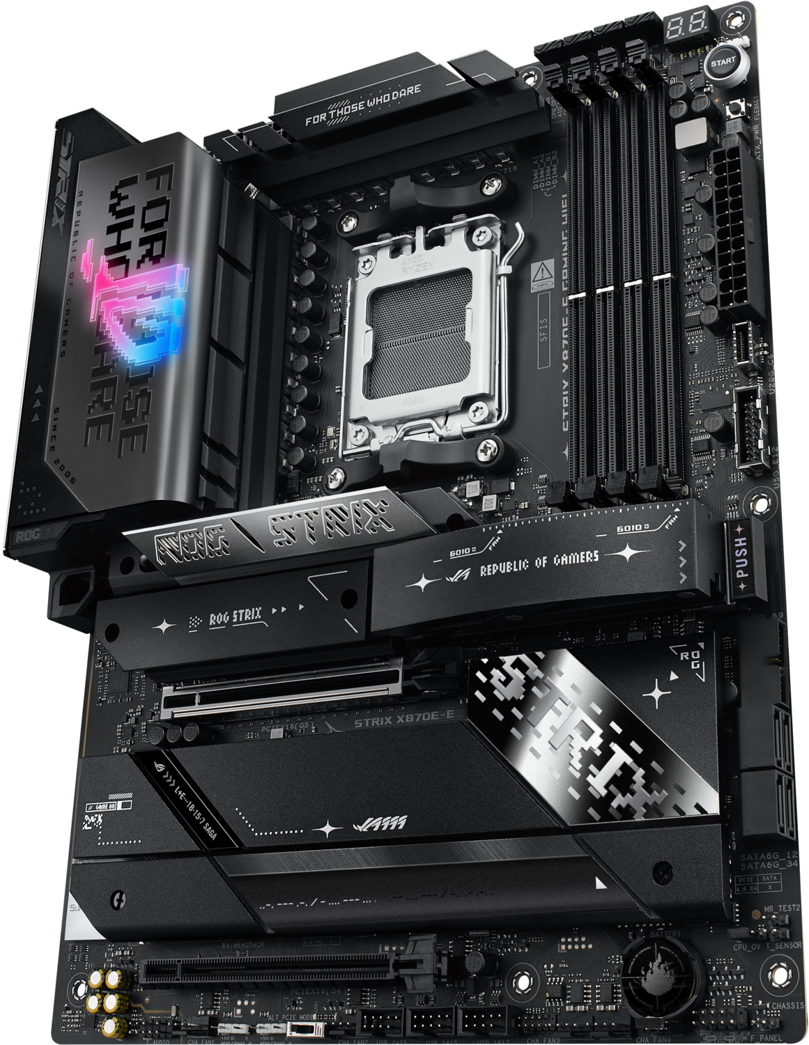 Для тех, кто хочет превзойти стандартные скорости DDR5, Strix X870E-E готов к комплектам для энтузиастов благодаря широкой поддержке AMD Extended Profiles for Overclocking (EXPO). Опытные ветераны могут дополнительно настроить производительность с помощью широкого набора настроек в UEFI. ROG Strix X870E-E Gaming WiFi также имеет 60-миллиметровое крепление вентилятора на радиаторе M.2 для дополнительного потока воздуха.