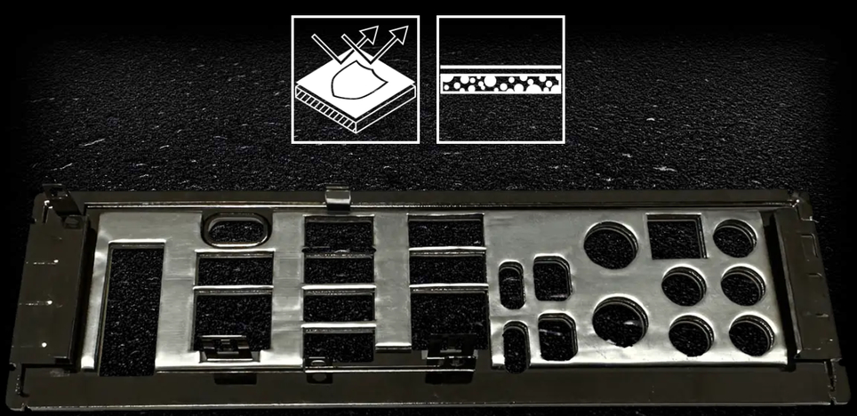 Дополнительный слой губчатых материалов, устойчивых к коррозии, делает IO-панель материнских плат MSI более устойчивой к электростатическим разрядам, уменьшает электромагнитные шумы от системы и делает ее гораздо более долговечной по сравнению с обычными IO-панелями.