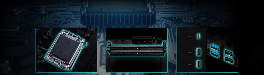 - Усовершенствованный слот SMT (Surface Mount Technology) PCIE уменьшает помехи и электрические шумы, полностью поддерживает сигнал PCI-E 5.0.