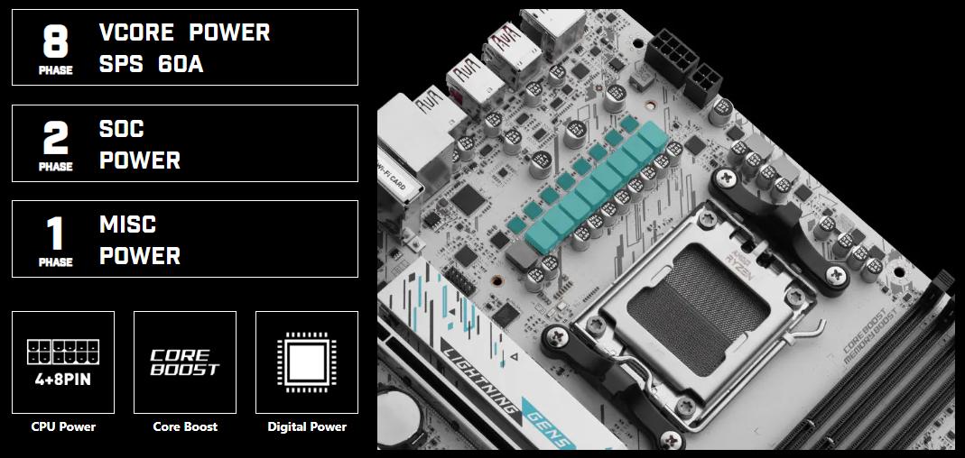 Раскройте и поддерживайте отличную производительность с усовершенствованной конструкцией VRM, построенной с цифровой системой питания процессора, 8+4-контактными разъемами питания и эксклюзивной технологией Core Boost. B850M GAMING PLUS WIFI готова выдерживать большие игровые нагрузки.