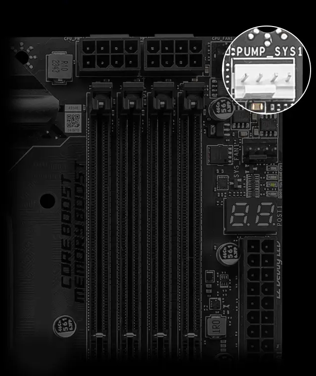 Подключите и синхронизируйте кулеры и корпуса MSI с помощью стратегически расположенных разъемов, включая специальный разъем для насоса-вентилятора.