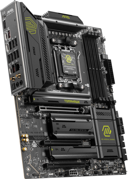 MAG X870E TOMAHAWK WIFI создана для геймеров, которым нужна стабильная, прочная и удобная для DIY основа для сборки ПК. Благодаря наличию настоящего решения Wi-Fi 7, локальной сети 5G, USB 40 Гбит/с, решений PCIe 5.0, дополнительного питания PCIe и эксклюзивных функций EZ DIY она готова к битве с процессорами AMD Ryzen серии 9000.