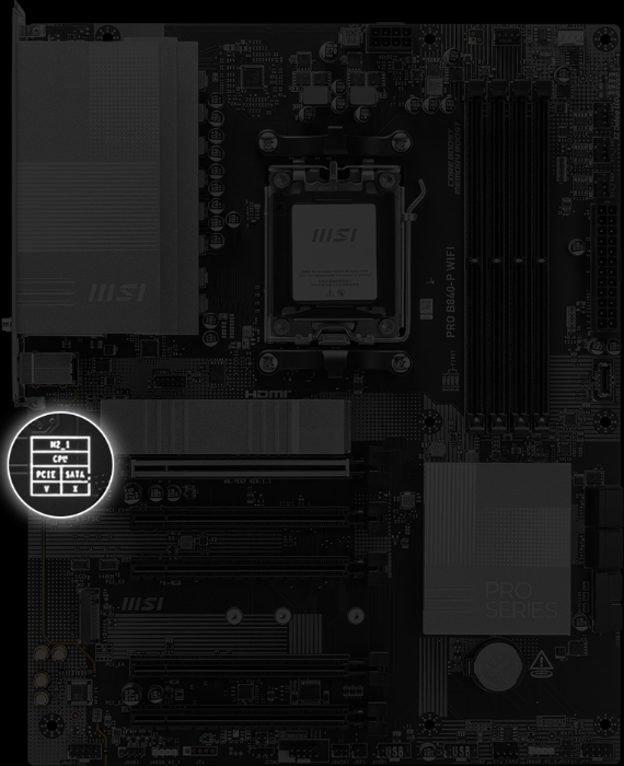 Огромный шаг в повышении производительности DDR с новейшей памятью DDR5. В сочетании со специальным процессом SMT-сварки и технологией MSI Memory Boost, PRO B840-P WIFI готова обеспечить производительность памяти мирового класса.