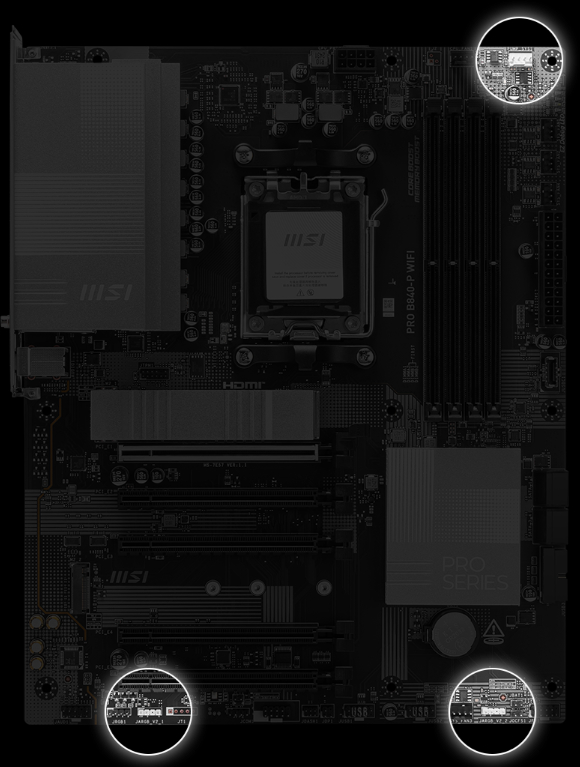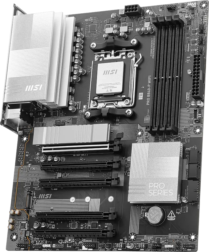 Вызовите и поддерживайте максимальную производительность благодаря конструкции VRM с 7+2+1 цифровыми фазами питания. Благодаря 8-контактному разъему питания PRO B840-P WIFI готова к выполнению задач с высокой нагрузкой.
