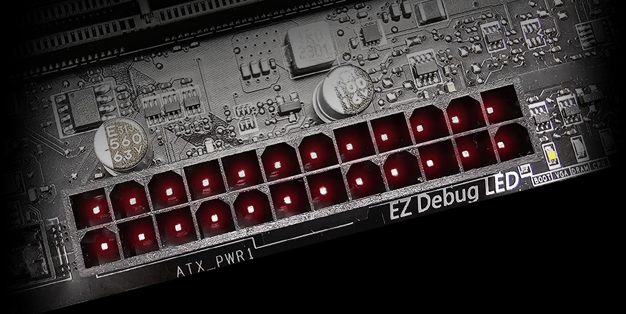 Этот светодиод загорается при обнаружении неисправной памяти в слотах, избавляя от необходимости гадать при устранении неполадок.