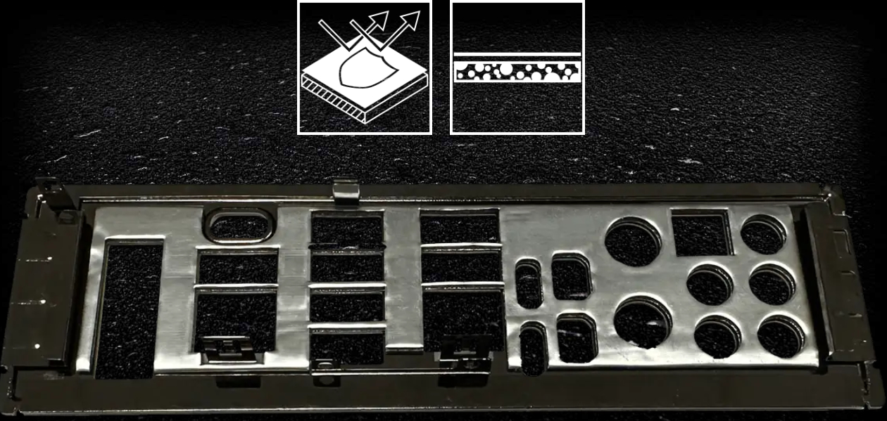 Дополнительный слой губчатых материалов наряду с коррозионной стойкостью IO Shield помогает улучшить статическое электричество и уменьшить шум электромагнитного излучения от системы, а также гораздо более долговечен по сравнению с традиционными IO Shields.