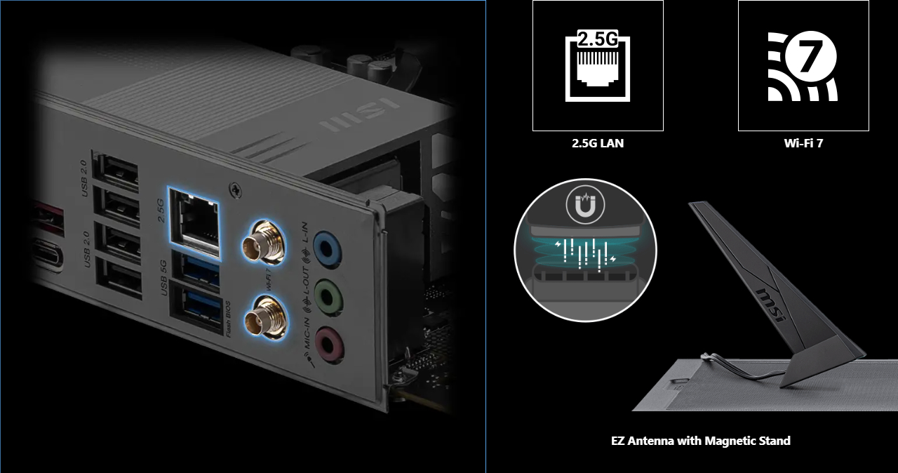 MSI EZ антенна облегчает процесс установки, поскольку крепежные элементы просто прикрепляются к материнской плате без вращения.