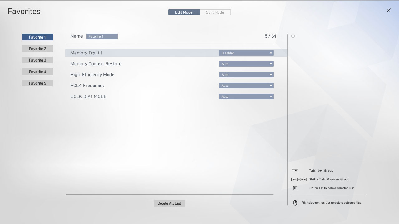Режим высокой эффективности предназначен для оптимизации работы памяти за счет увеличения ее пропускной способности и снижения задержек. Четыре набора настроек таймингов оперативной памяти позволяют пользователям подобрать оптимальную конфигурацию в зависимости от качества модулей памяти.