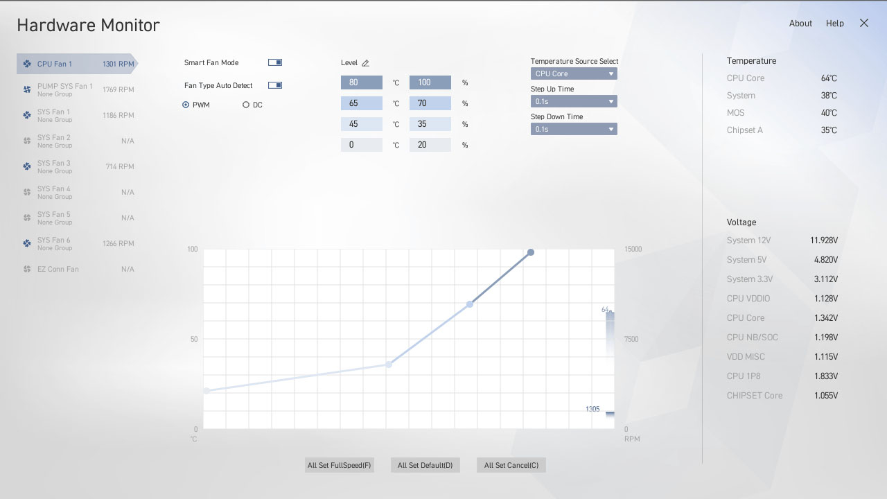 Вентиляторные коллекторы MSI автоматически определяют вентиляторы, работающие в режиме DC или PWM, для оптимальной настройки скорости вращения вентиляторов и обеспечения тишины. Гистерезис также заставляет вентиляторы плавно раскручиваться, чтобы ваша система оставалась бесшумной, несмотря ни на что.