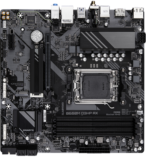 - Материнская плата GIGABYTE B650M D3HP AX sAM5 B650 4xDDR5 M.2 HDMI DP mATX