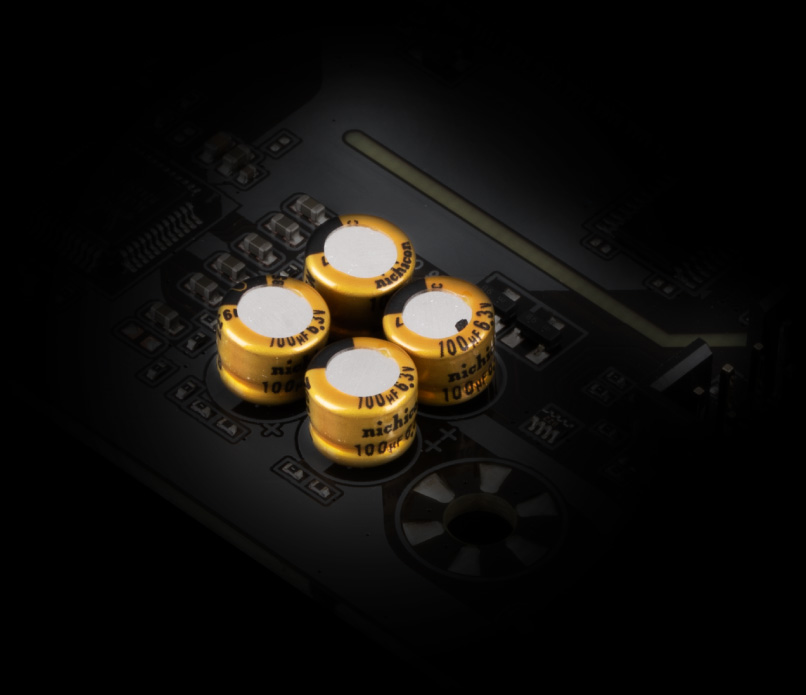 В системных платах GIGABYTE используются аудиоконденсаторы высокого класса. Эти высококачественные конденсаторы обеспечивают высокое разрешение и точность звука, что позволяет добиться максимально реалистичных звуковых эффектов для геймеров.