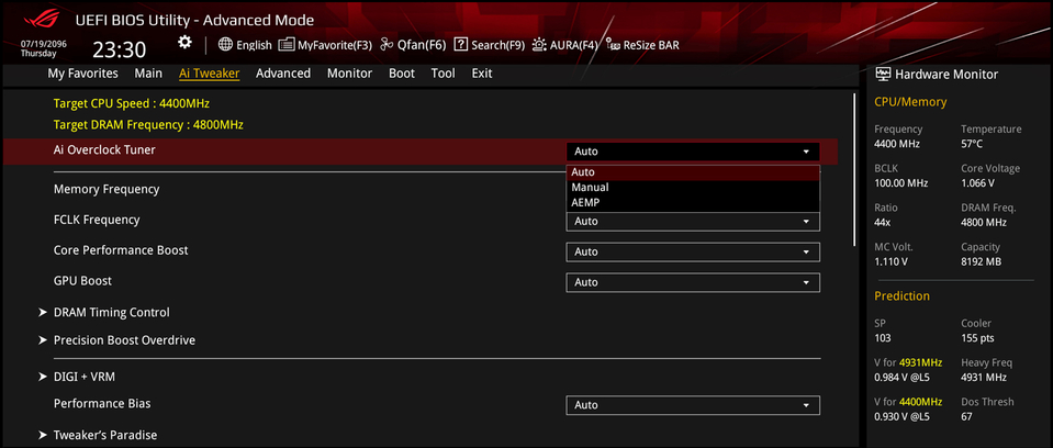 ASUS AI Overclocking анализирует процессор и систему охлаждения, чтобы предсказать оптимальную конфигурацию и выжать из системы максимум возможностей. Предсказанные значения могут быть применены автоматически или использованы в качестве отправной точки для дальнейших экспериментов.