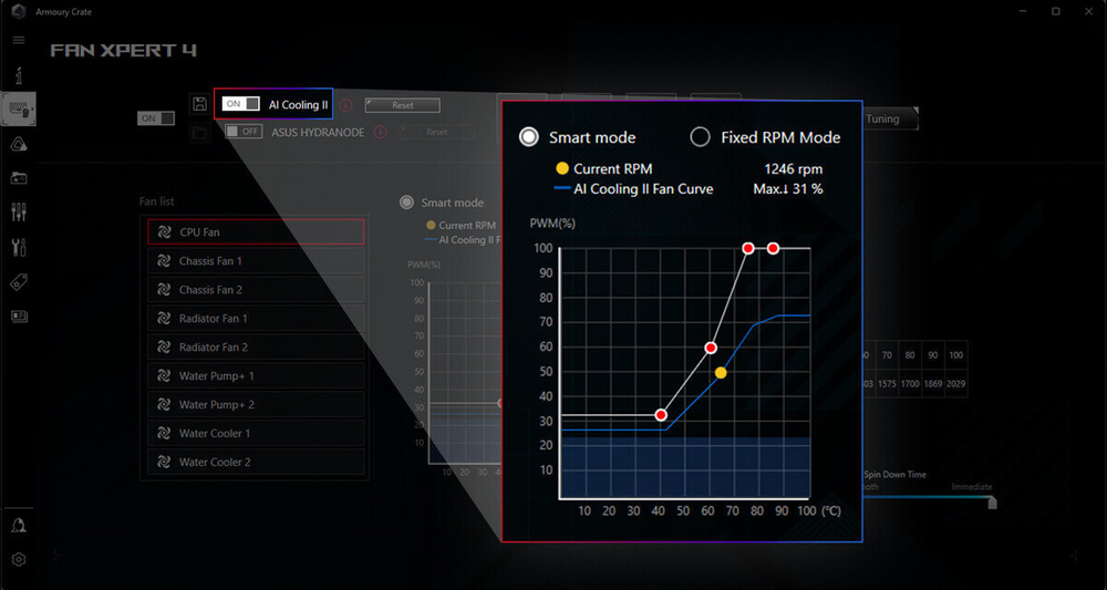 Сбалансируйте тепловые и акустические характеристики любой сборки одним щелчком мыши. Запатентованный алгоритм ASUS снижает ненужный шум во время быстрого стресс-теста, а затем отслеживает температуру процессора, чтобы динамически регулировать скорость вентиляторов до оптимальной.