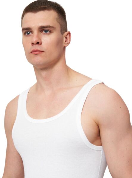 Майка нательная мужская — базовая модель из натурального хлопка для ежедневного комфорта. Она мягкая и легкая. Материал хорошо пропускает воздух, поддерживая оптимальный микроклимат. Крой позволяет майке удобно сидеть и не сковывать движений. Идеальный выбор для ношения под одежду.