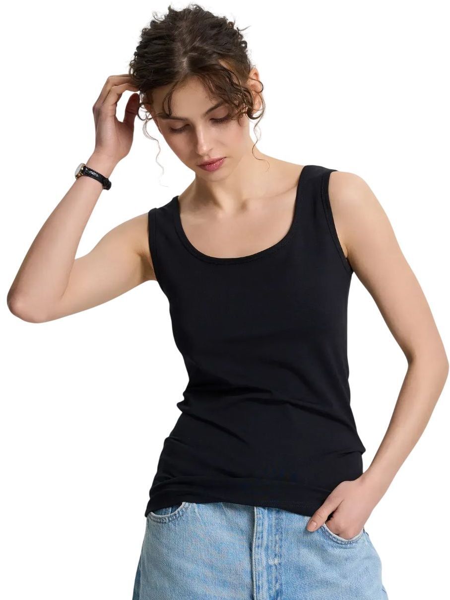 Майка с круглым вырезом и зауженной посадкой – идеальный выбор для тех, кто ценит стиль и желает выгодно подчеркнуть облегающий силуэт. Прилегает к телу, не создавая эффекта тесноты. Подходит для создания образов любого стиля и может служить как самостоятельным элементом, так и дополнительным слоем образа.