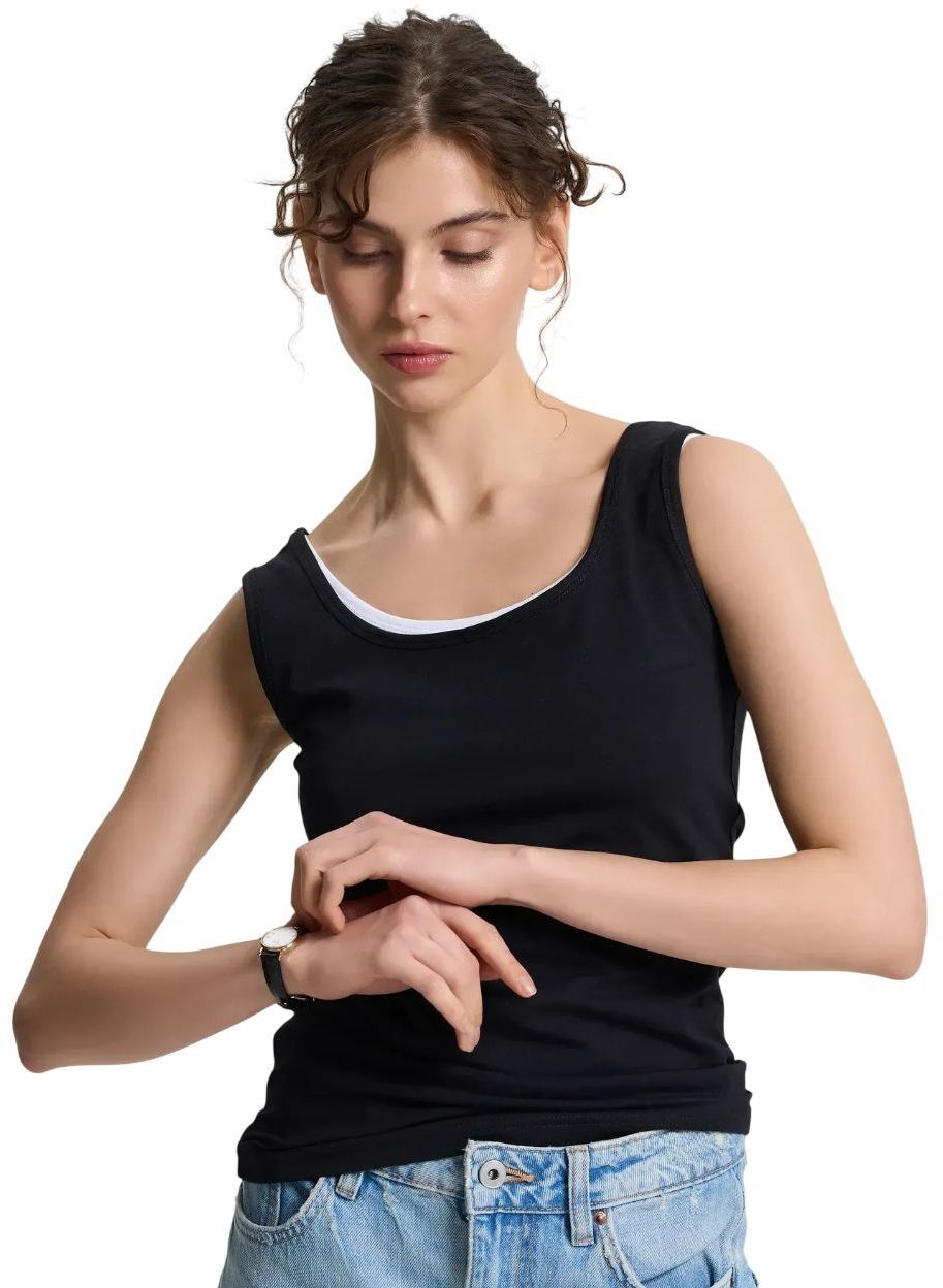 Майка с круглым вырезом и зауженной посадкой – идеальный выбор для тех, кто ценит стиль и желает выгодно подчеркнуть облегающий силуэт. Прилегает к телу, не создавая эффекта тесноты. Подходит для создания образов любого стиля и может служить как самостоятельным элементом, так и дополнительным слоем образа.