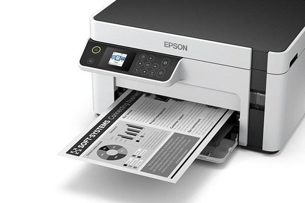 Epson M2110 – отличное решение для небольшой рабочей группы. МФУ можно подключить к сети по Ethernet для работы с нескольких компьютеров и одновременно выполнять несколько заданий – например, устройство может принимать задания на печать с одного ПК и отправлять отсканированные документы на ПК другого сотрудника.