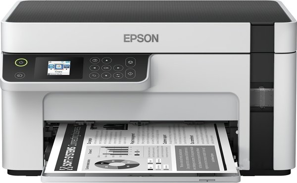 Epson M2120 — это компактное монохромное устройство 3 в 1 (принтер-сканер-копир) с поддержкой подключения по Wi-Fi и Wi-Fi Direct.