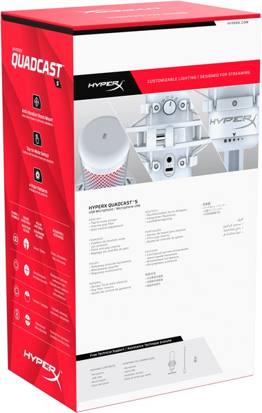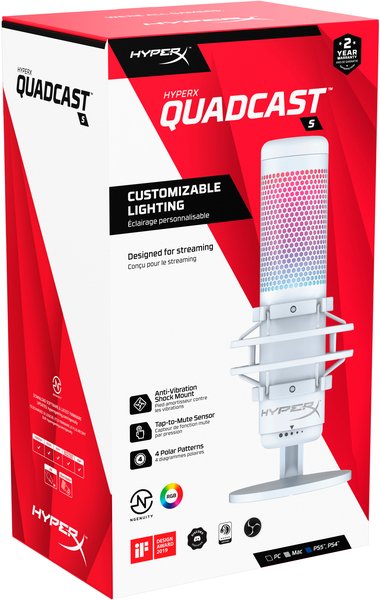 Стоечный микрофон HyperX QuadCast S предназначен как для профессиональных стримеров, так и для начинающих энтузиастов, которым нужен качественный звук. Микрофон оснащен виброгасящим амортизатором, легко доступными органами управления уровнем, четырьмя переключаемыми диаграммами направленности, а также функцией отключения касанием, сопровождаемой светодиодным индикатором состояния трансляции. Благодаря чистому захвату голоса без искажений, QuadCast S поднимает связь стримера со своей аудиторией на невиданную ранее высоту, а настраиваемые динамические эффекты полноцветной RGB подсветки придадут стильный и запоминающийся внешний вид рабочего места стримера.