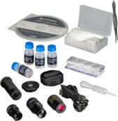| Комплектация (возможны изменения в разных поставках) | Инкубаторий, Камера, Кейс, Линза Барлоу, Микроскоп, Нониус, Обьектив - 3 шт., Окуляр - 2 шт., Покровное стекло - 10 шт., Предметное стекло - 5 шт., Препарат - 4 шт., Рассеивающий фильтр, Слайд - 5 шт., Чехол |