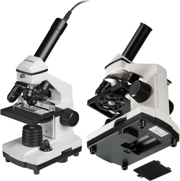 Дополнительные возможности предоставляет HD-камера Bresser, поставляемая в комплекте с программным обеспечением. С ее помощью можно наблюдать на мониторе персонального компьютера все, что происходит под объективом микроскопа в реальном времени, а также можно создавать и редактировать фотографии с разрешением 1280х720 в формате JPEG. Системные требования невысокие: Intel Pentium IV или эквивалентный и выше; CD или DVD, операционная система Windows 8, 10, 7, 1 Гб RAM, 2 ГГц процессор, и 500 MB места на жестком диске. Питание микроскопа осуществляется от трех самых распространенных батареек АА (LR6). Таким образом, микроскоп независим от сети переменного тока и может быть использован даже в полевых условиях.