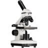 Комбинация двух широкоугольных окуляров и трех объективов дает возможность получить увеличение 640х. Уникальным является использование в учебном микроскопе линзы Барлоу для получения бесступенчатого (плавного) зуммирования изображения, благодаря чему достигается максимальное увеличение 1280х. Монокулярная насадка, наклоненная под углом 45°, поворачивается на 360°, позволяя наблюдать в любом удобном положении, и даже работать с микроскопом группе детей или взрослых без перемещения микроскопа в пространстве.