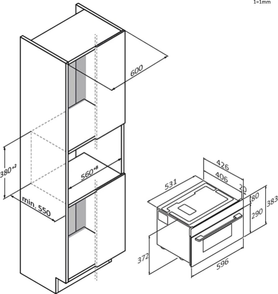 | Размеры для встраивания (ВхШхГ), см | 38х56х55 |