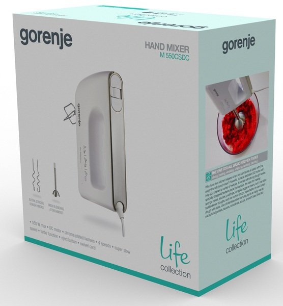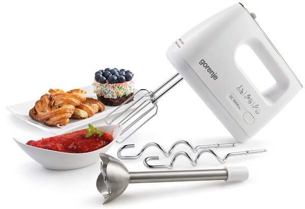 Эти высококачественные миксеры предназначены для смешивания, взбивания, вымешивания и приготовления пюре. К ним прилагаются два венчика, два крюка для вымешивания теста и насадка-блендер.