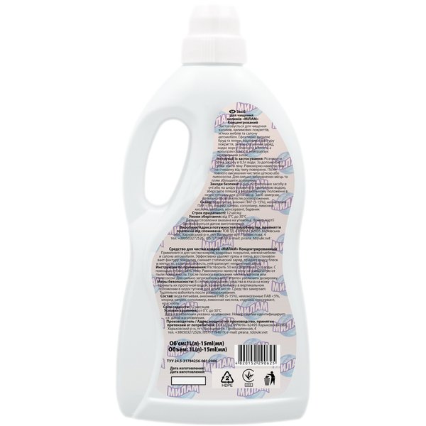 Состав: вода питьевая, анионные ПАВ (5-15%),неионогенные ПАВ(<5%), хлорид натрия, сополимер, лимонная кислота, отдушка, консервант, краситель.