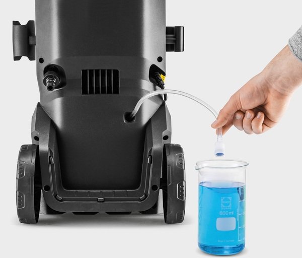 Высокопроизводительный минимойка высокого давления K 5 WCM, оснащенный мощным и долговечным двигателем водяного охлаждения, способен быстро устранить любые загрязнения. Он укомплектован струйными трубками, позволяющими эффективно очищать любые объекты – садовые дорожки, террасы, автомобили и т. д. Трубка Vario Power предусматривает легкую регулировку давления для бережной очистки чувствительных поверхностей. В комплект поставки входят также грязевая фреза, формирующая вращающуюся точечную струю, и встроенный фильтр для воды, надежно защищающий насос от частиц грязи.