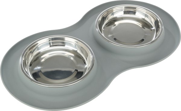 Миска для котов Trixie двойная металл/силикон 2х0.3л 16 см, 47х26х3см Серая