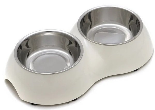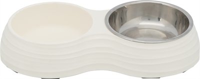 Миска для собак Trixie двойная, меламин/металл, 2х0.4л/14см/32х6х17см, белый