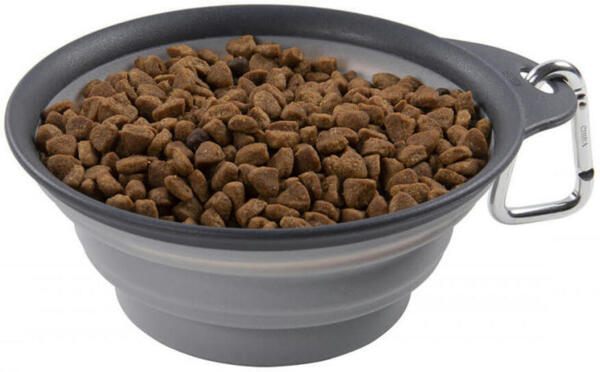 Dexas Travel Cup Bottle Holder & Carabiner - дорожная складная миска с креплением на бутылку и карабином для подключения к ремешку, рюкзаку или переноске. Активные путешествия и прогулки истощают пушистиков, поэтому им нужен отдых и время, чтобы попить свежей водички или полакомиться вкусненьким. Для этого идеально подойдет складная миска, она занимает минимум места, легко раскладывается/складывается, хорошо держит форму и не впитывает запахи.