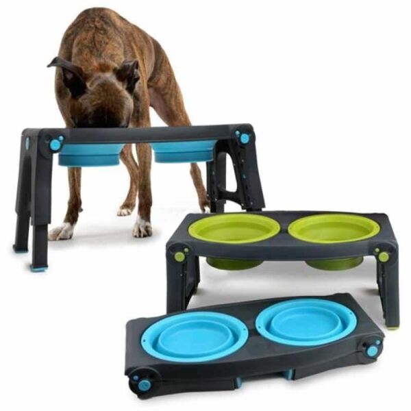 Миска двойная силиконовая с регулируемыми ножками для собак. Регулируемая складная двойная кормушка для домашних животных - это решение для собак любого возраста и размера. Приподнятое положение мисок устраняет нагрузку на суставы, вызванную наклоном во время еды, улучшает пищеварение и способствует правильной позе во время кормления. Приподнятая кормушка особенно полезна также и для пожилых собак, собак с артритом или болью в суставах. Высокая модель особенно полезна для крупных и пожилых собак, а также для собак с артритом или болями в суставах. Модель может складываться для хранения, компактна для перевозки во время путешествия.