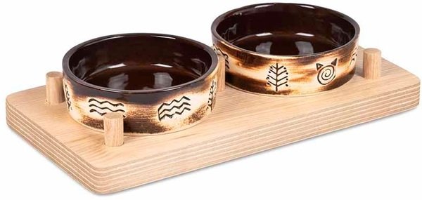 Миски Природа керамические для собак и кошек Этно 2x0,2л на деревянной подставке
