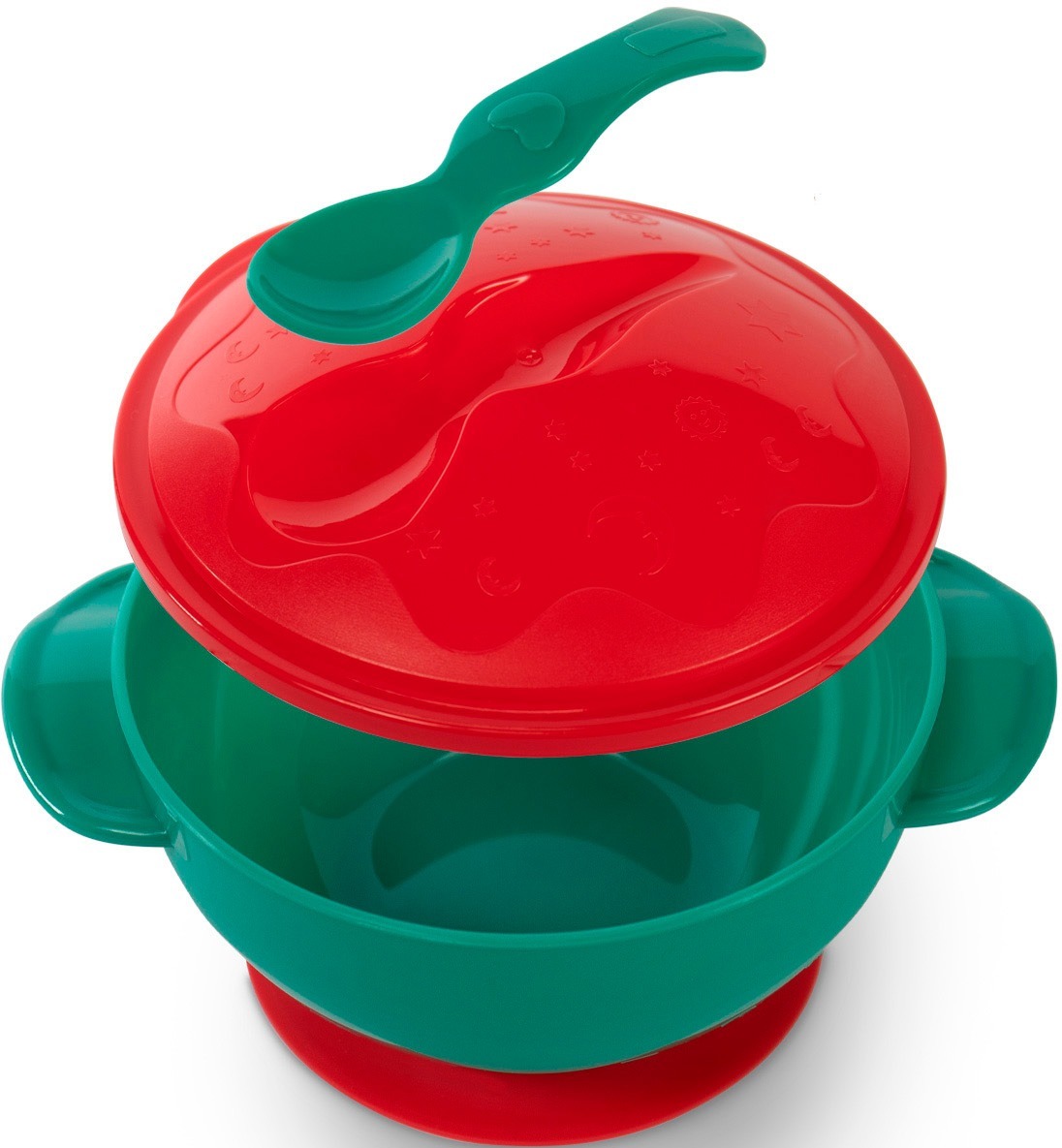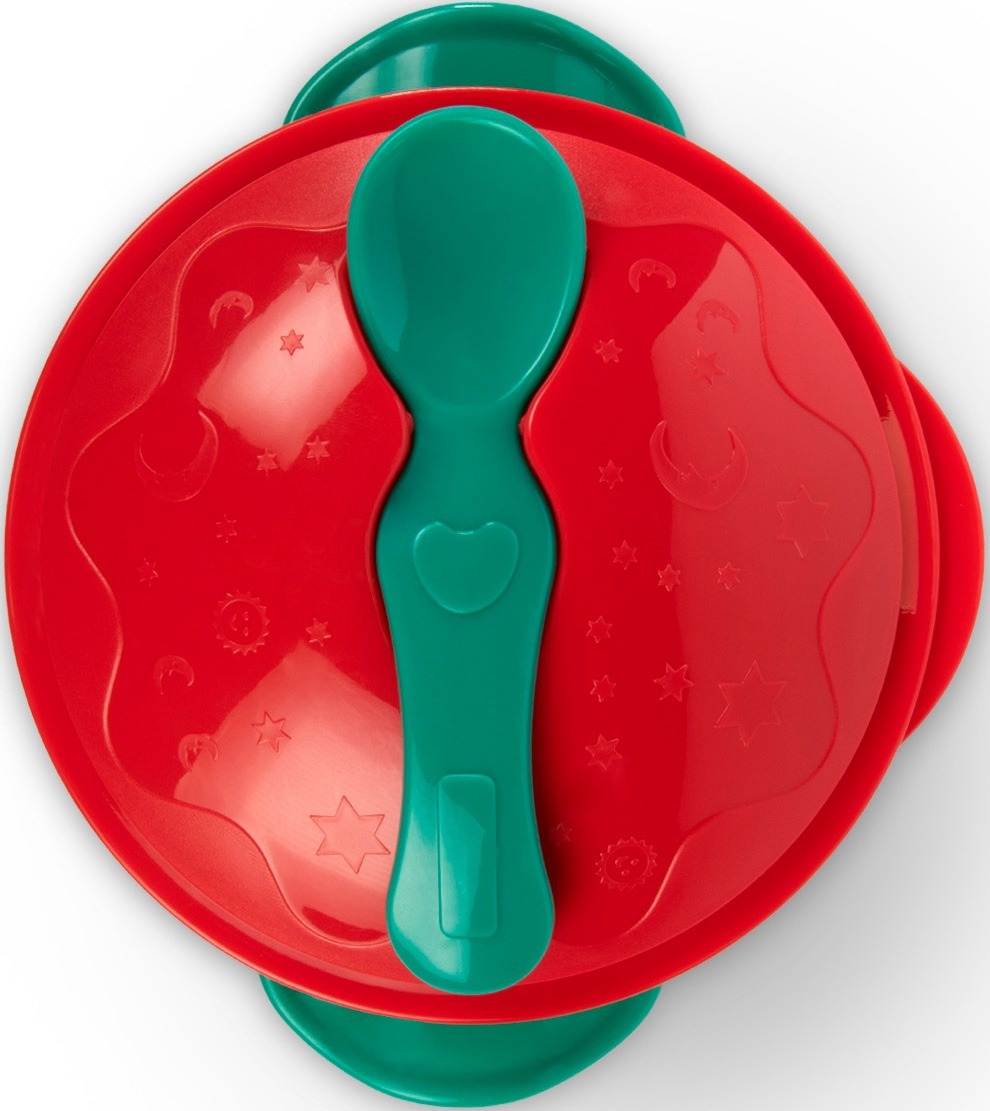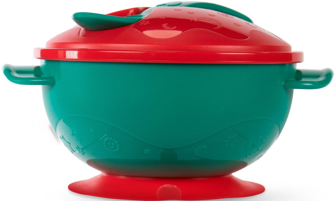Мисочка BABOO с присоской, крышкой и ложечкой, красная, 6+ мес (9-034)