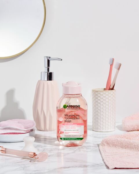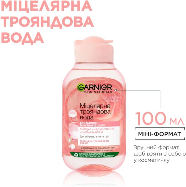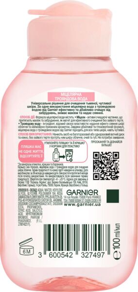 - Мицеллярная вода Garnier Skin Naturals с розовой водой Для очищения кожи лица 100мл