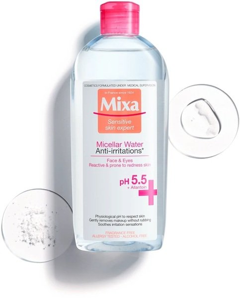 - Мицеллярная вода Mixa против раздражений для чувствительной кожи лица 400мл