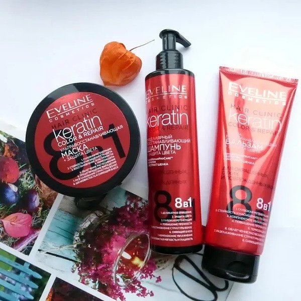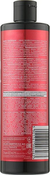Мицеллярный шампунь 8 в 1 Eveline (Эвелин) Hair Clinic Keratin Color & Repair Восстанавление и защита цвета заботится о волосах, тщательно, но деликатно очищая их от корней до кончиков.