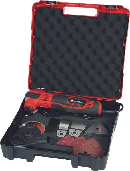 Многофункциональный инструмент Einhell поставляется с обширным набором принадлежностей в практичном кейсе, так что вы можете сразу же приступить к работе.