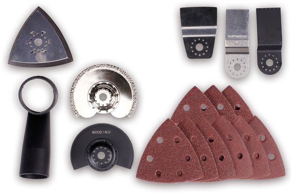| Комплектация (возможны изменения в разных поставках) | Адаптер для пылесоса, Документация, Кейс, Наждачная бумага P120 - 3 шт., Наждачная бумага P60 - 3 шт., Наждачная бумага P80 - 3 шт., Погружное полотно, Реноватор, Сегментная алмазная пилка для швов между плиткой, Сегментное полотно, Скребок, Треугольная шлифовальная пластина, Холст для металла |