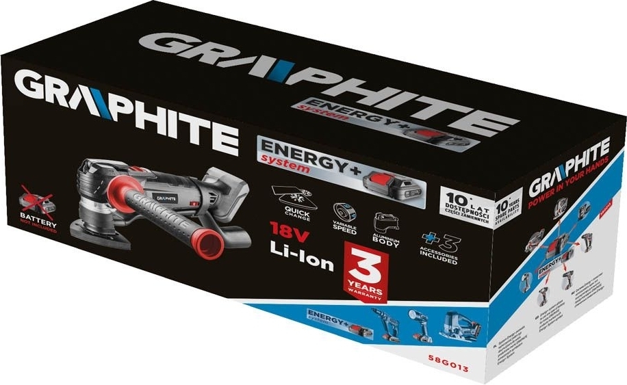 - Многофункциональный инструмент GRAPHITE Energy+ 18В без АКБ и ЗУ (58G013)