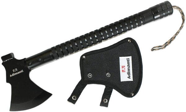 Модель AXE-003 от бренда Adimant - многофункциональный инструмент, чья конструкция включает острый топор и ряд мелких дополнений. Изделие предназначено для использования в полевых условиях и обладает компактными размерами, что позволяет носить инструмент в туристическом рюкзаке или хранить в багажнике автомобиля.