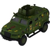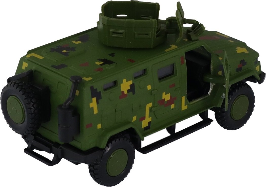 У бронеавтомобиля прочный металлический корпус. Открываются передние дверцы.