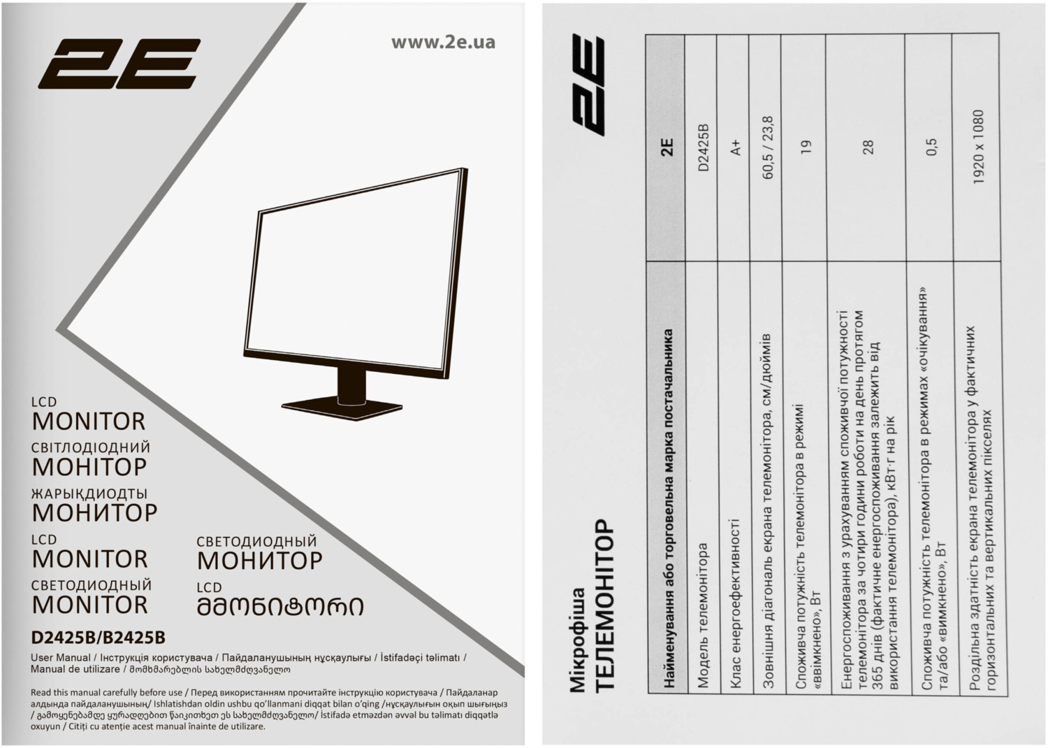 - Монитор 23.8" 2E D2425B (2E-D2425B-01.EU)