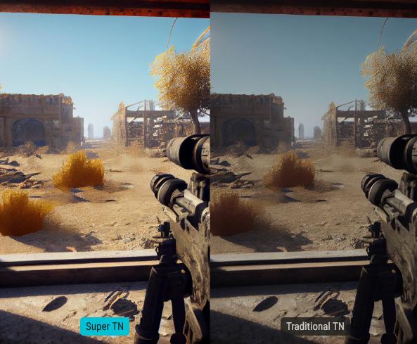 По сравнению с традиционными панелями TN, панель Super TN, используемая в XG248QSG, обладает удивительными характеристиками, которые дают профессиональным игрокам FPS решающее преимущество над конкурентами.