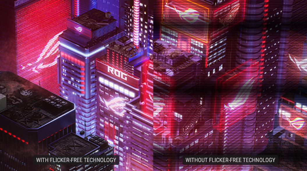 Сертифицированная TÜV Rheinland технология ASUS Flicker-Free устраняет мерцание, обеспечивая комфортный просмотр. Эта технология помогает минимизировать утомляемость глаз и другие потенциальные проблемы, обычно связанные с длительным просмотром.