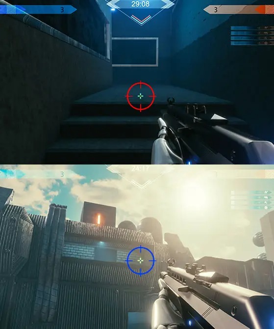 Если цвет прицела совпадает с цветом фона, прицеливание может быть затруднено. Умный прицел автоматически меняет цвет, что делает его хорошо видимым при любых условиях.