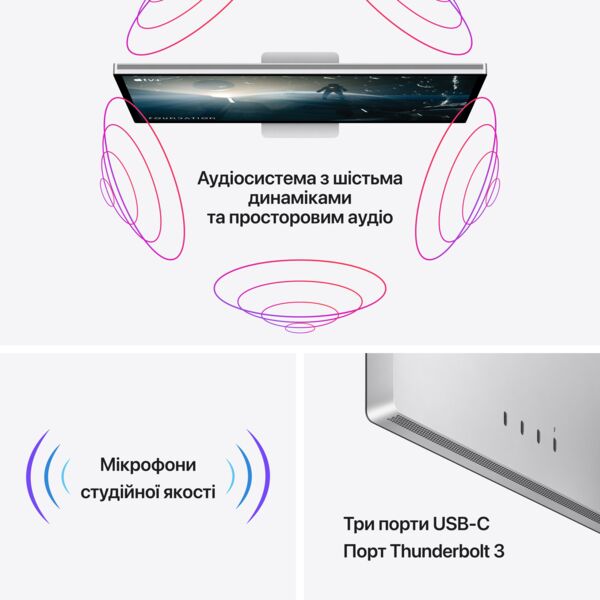 Studio Display - это окно в новые захватывающие миры, привлекающее ваше внимание с первого взгляда. Это тонкий дисплей с экраном на всю переднюю панель и мощными функциями, который воплощает в жизнь яркое изображение с высокой детализацией.