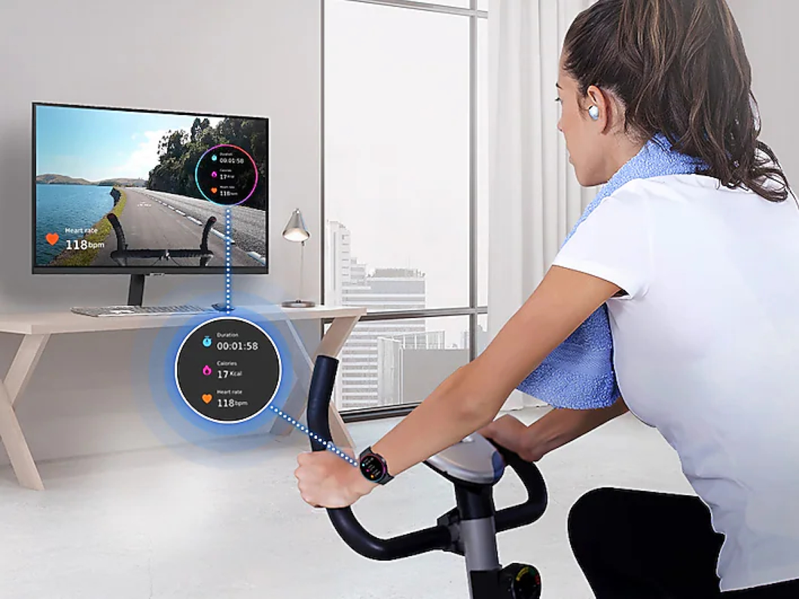 Забудьте о скучных тренировках. Транслируйте тренировочный контент или выполняйте собственную тренировку во время просмотра телевизора на Smart Monitor. Соединитесь с Galaxy Watch, чтобы отслеживать данные о состоянии здоровья на экране в режиме реального времени, не прекращая при этом просмотр потокового контента.